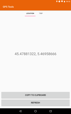 GPS Tools is an Android app that provides simple tools to use your GPS. You can get your current location or store a trip, allowing you to display your path on a map (GoogleMaps, OpenStreetMaps, etc.).